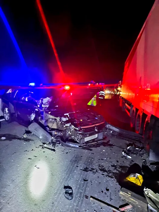 FOTO | Un bărbat de 52 de ani a murit după ce mașina în care se afla a intrat într-un TIR parcat pe DN 5, în județul Giurgiu