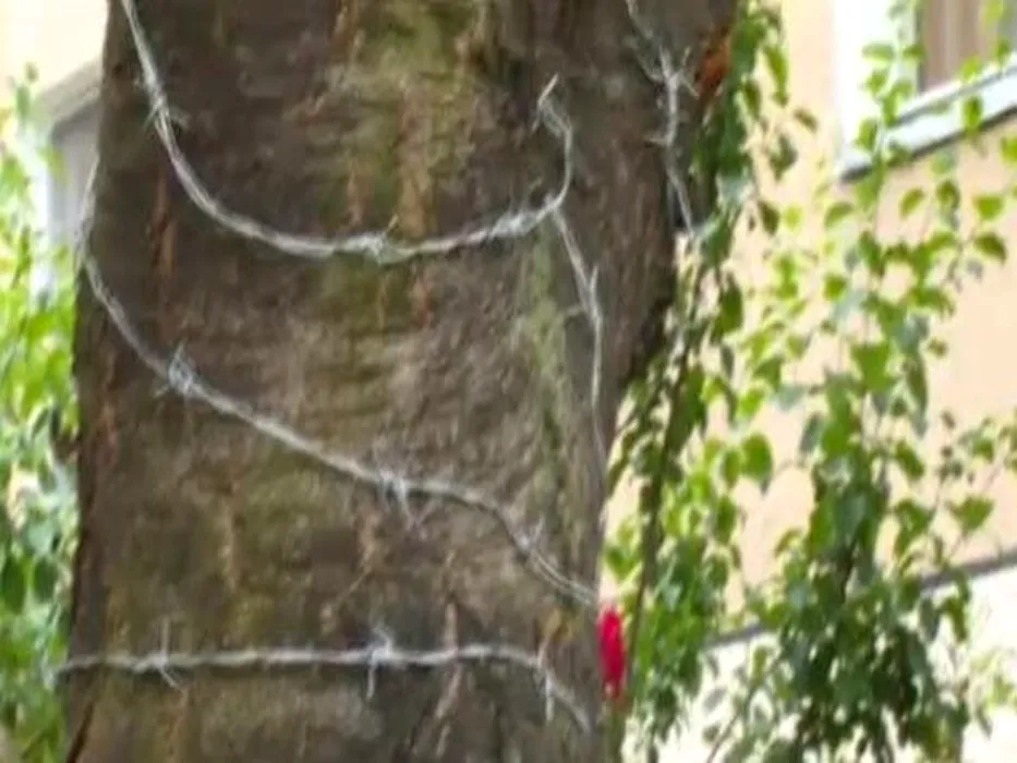 Un bărbat din Bistrița a înfășurat sârmă ghimpată pe un cireș