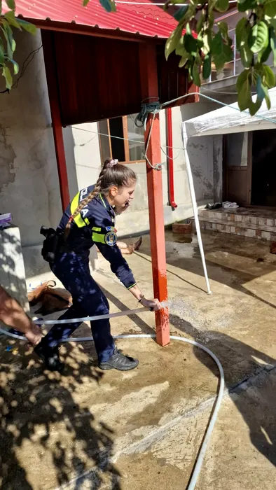 Un bărbat din județul Olt s-a certat cu soția și a dat foc la casă. Primarul comunei s-a urcat pe scară și a reușit să-l imobilizeze