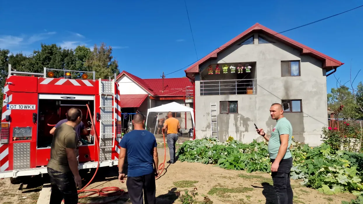 Un bărbat din județul Olt s-a certat cu soția și a dat foc la casă. Primarul comunei s-a urcat pe scară și a reușit să-l imobilizeze
