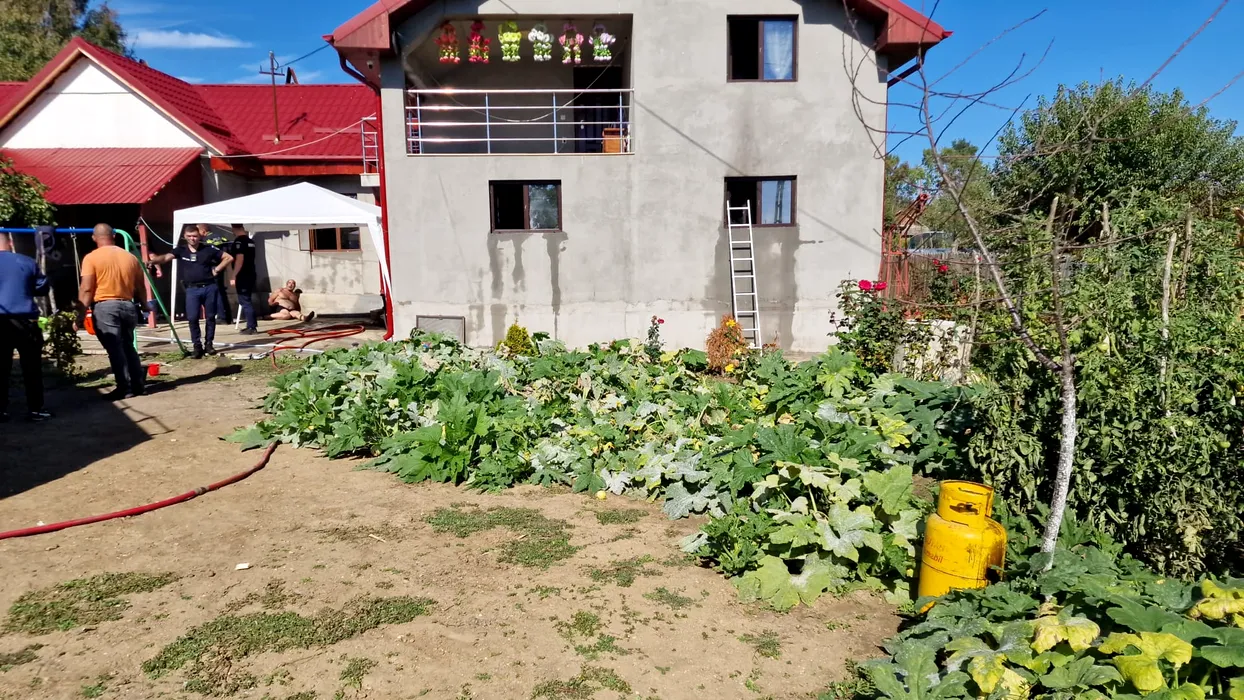 Un bărbat din județul Olt s-a certat cu soția și a dat foc la casă. Primarul comunei s-a urcat pe scară și a reușit să-l imobilizeze