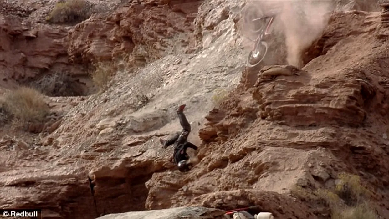 Un biciclist a filmat momentul în care cade de pe o stâncă, în timpul unui concurs Redbull. Ce a făcut după producerea accidentului