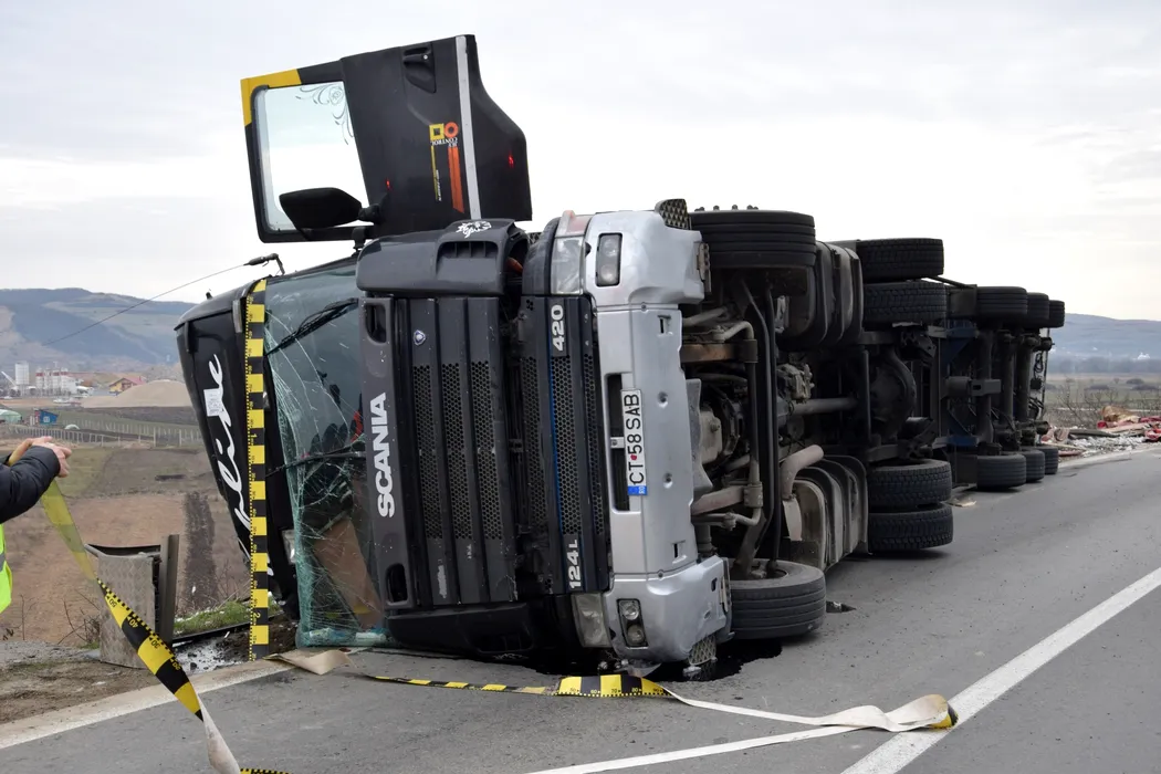 Un camion cu bumbac s-a răsturnat pe șoseaua de centură a municipiului Alba Iulia