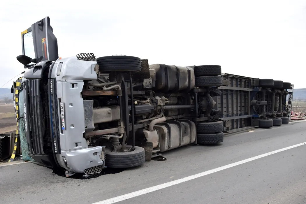 Un camion cu bumbac s-a răsturnat pe șoseaua de centură a municipiului Alba Iulia