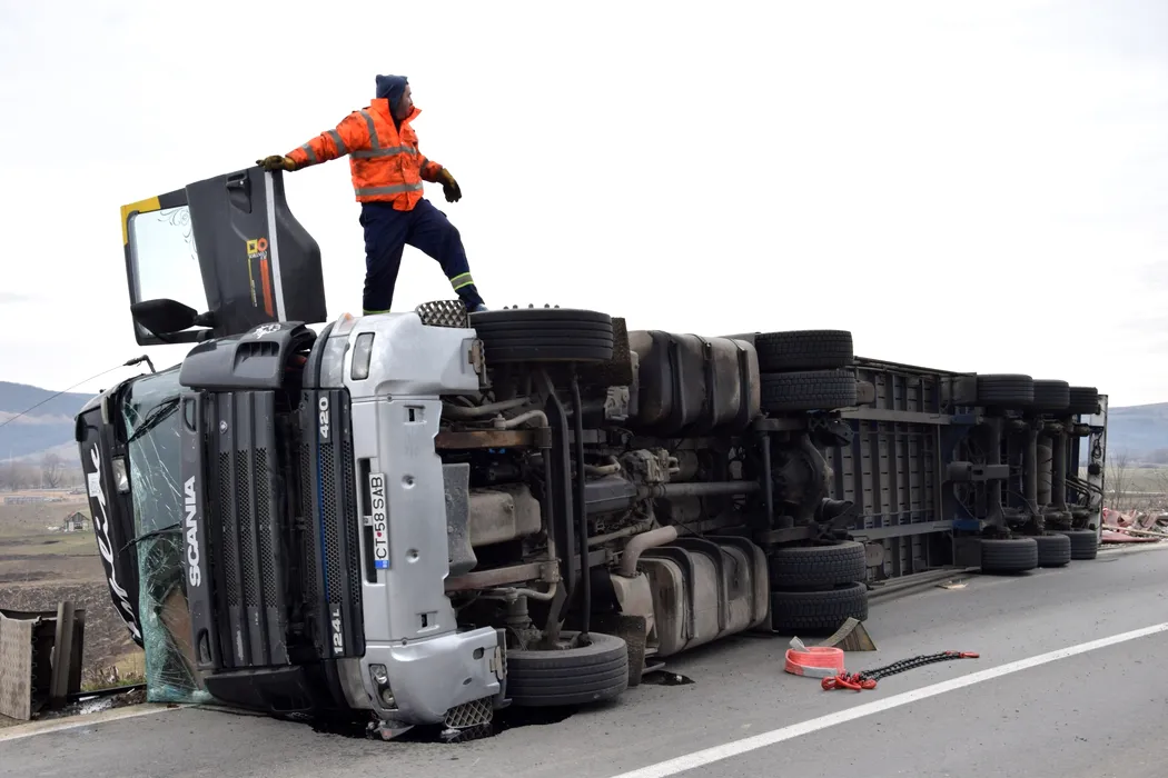 Un camion cu bumbac s-a răsturnat pe șoseaua de centură a municipiului Alba Iulia