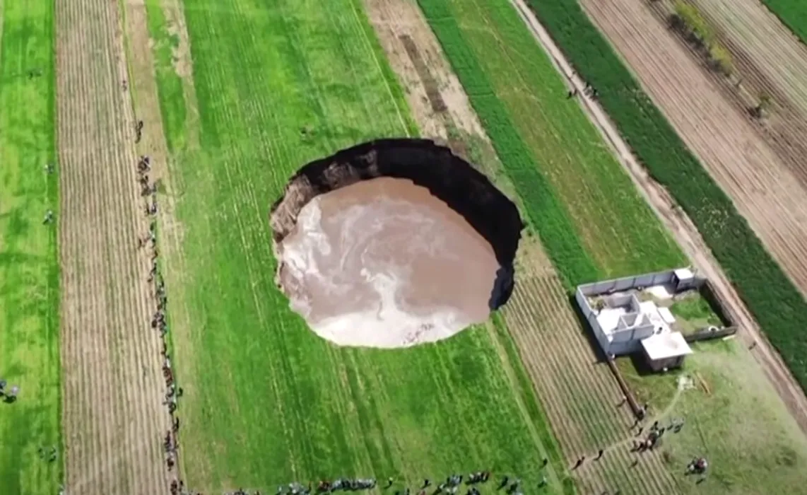 GALERIE FOTO: Un crater de 60 de metri plin cu apă a apărut inexplicabil în curtea unui fermier din centrul Mexicului – VIDEO