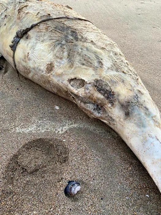 Un delfin a fost găsit mort pe plaja din Olimp. Turist: „Tot ce e posibil să fi atins vreo mină din cele care se știe că mai plutesc în Marea Neagră”