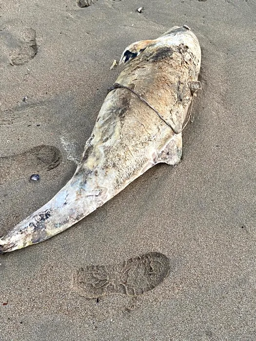 Un delfin a fost găsit mort pe plaja din Olimp. Turist: „Tot ce e posibil să fi atins vreo mină din cele care se știe că mai plutesc în Marea Neagră”