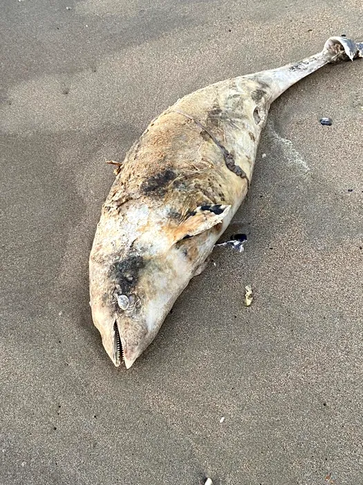 Un delfin a fost găsit mort pe plaja din Olimp. Turist: „Tot ce e posibil să fi atins vreo mină din cele care se știe că mai plutesc în Marea Neagră”