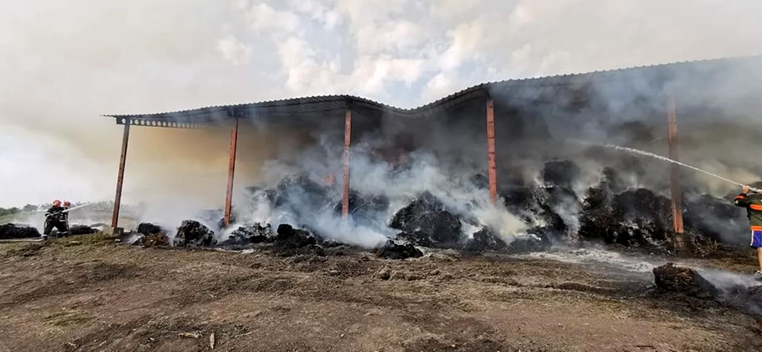 Un depozit de furaje din Botoșani arde de peste 24 de ore. Peste 50 de pompieri se luptă cu flăcările (FOTO)