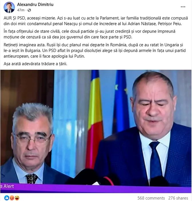 Un deputat USR iese la atac după anunțul că PSD depune moțiune cu AUR: „Rușii își duc planul mai departe în România”