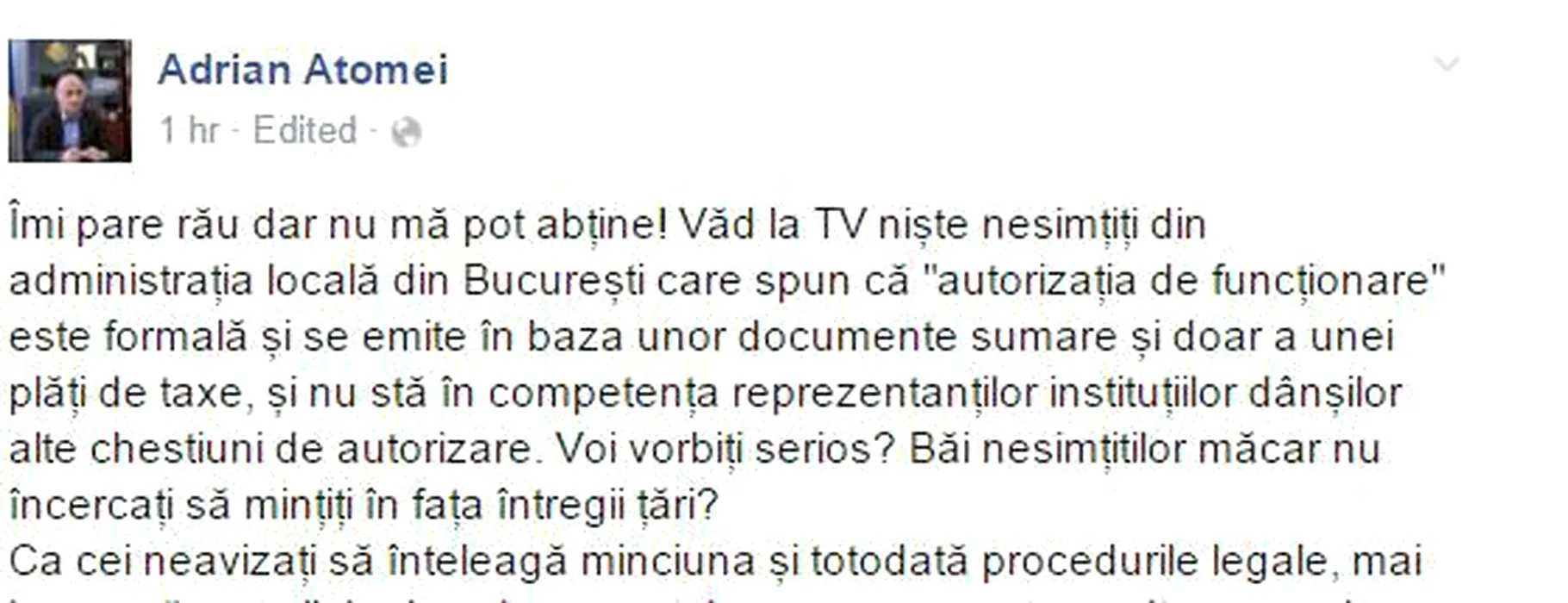 Un fost viceprimar a răbufnit pe Facebook, după tragedia de la Colectiv: „BĂI NESIMȚIȚILOR, măcar nu încercați să mințiți în fața întregii țări!”