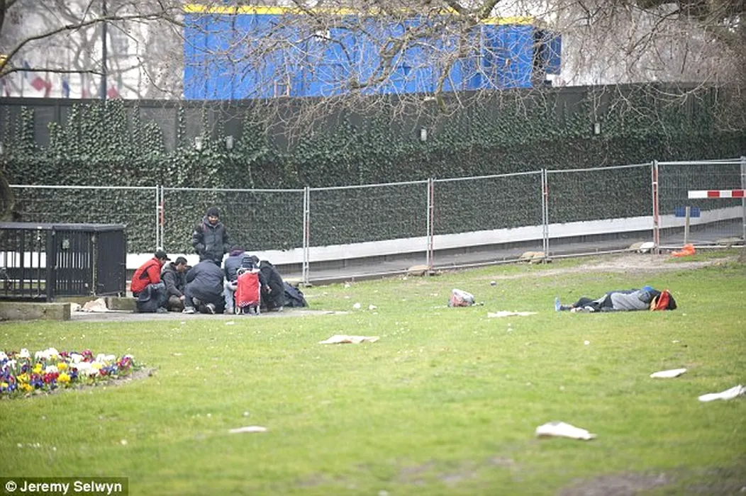 GALERIE FOTO: Un grup de cerșetori din România a ocupat un parc din centrul Londrei. GALERIE FOTO