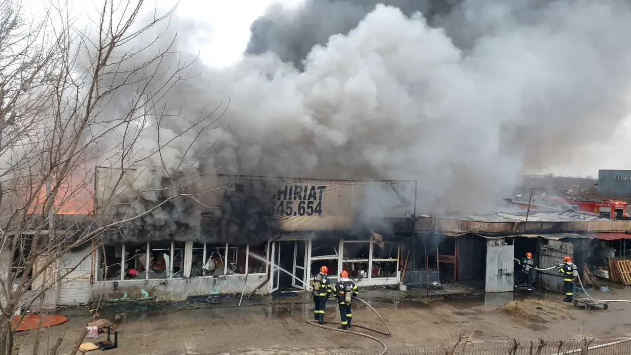 UPDATE | Un incendiu puternic a izbucnit la un depozit de pe bulevardul Iuliu Maniu, în apropiere de Centura Capitalei și A1 (VIDEO)
