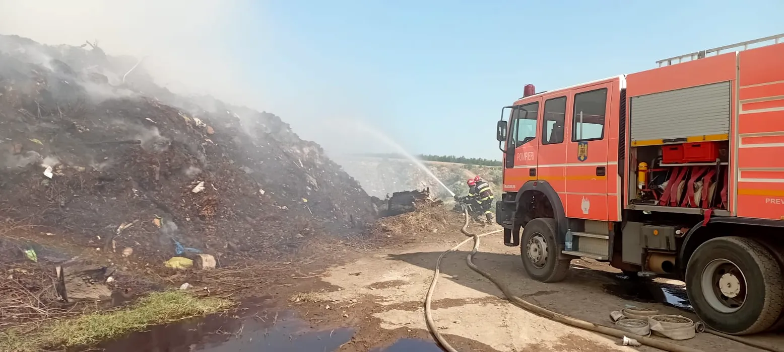 Un incendiu de proporții a izbucnit la groapa de GUNOI de lângă municipiul Galați, la fel ca și anul trecut. Cât a durat atunci stingerea focarelor