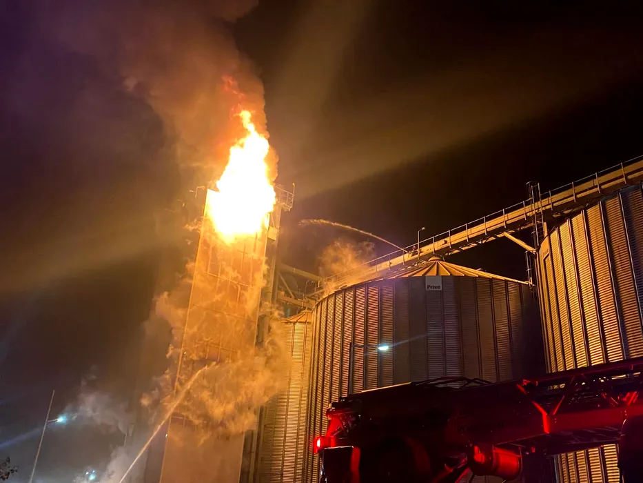 Un incendiu puternic a cuprins un depozit de cereale din Bacău. Zeci de tone de floarea soarelui au fost distruse de flăcări