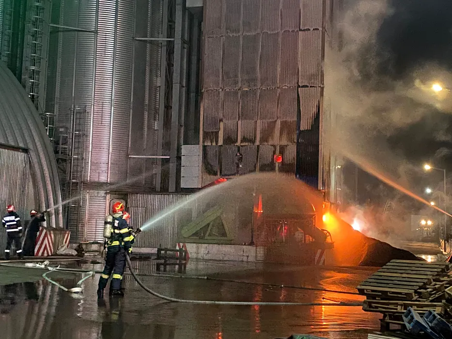 Un incendiu puternic a cuprins un depozit de cereale din Bacău. Zeci de tone de floarea soarelui au fost distruse de flăcări