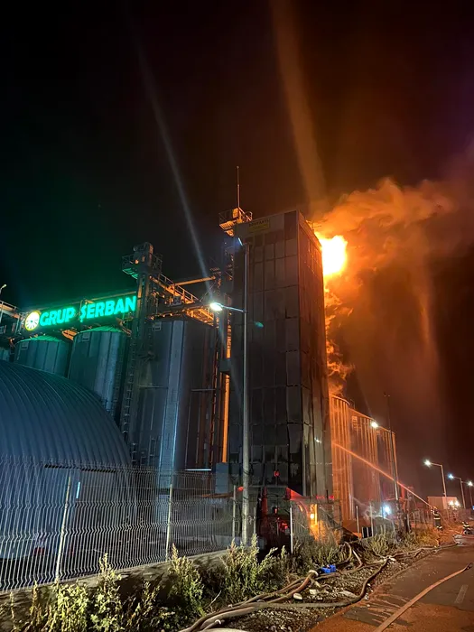Un incendiu puternic a cuprins un depozit de cereale din Bacău. Zeci de tone de floarea soarelui au fost distruse de flăcări