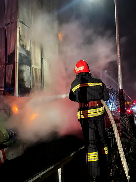 Un incendiu puternic a cuprins un depozit de cereale din Bacău. Zeci de tone de floarea soarelui au fost distruse de flăcări
