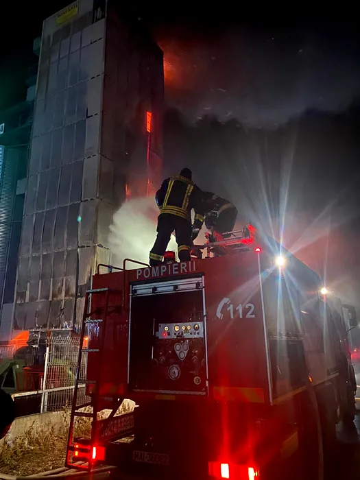 Un incendiu puternic a cuprins un depozit de cereale din Bacău. Zeci de tone de floarea soarelui au fost distruse de flăcări