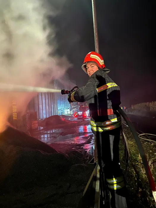 Un incendiu puternic a cuprins un depozit de cereale din Bacău. Zeci de tone de floarea soarelui au fost distruse de flăcări
