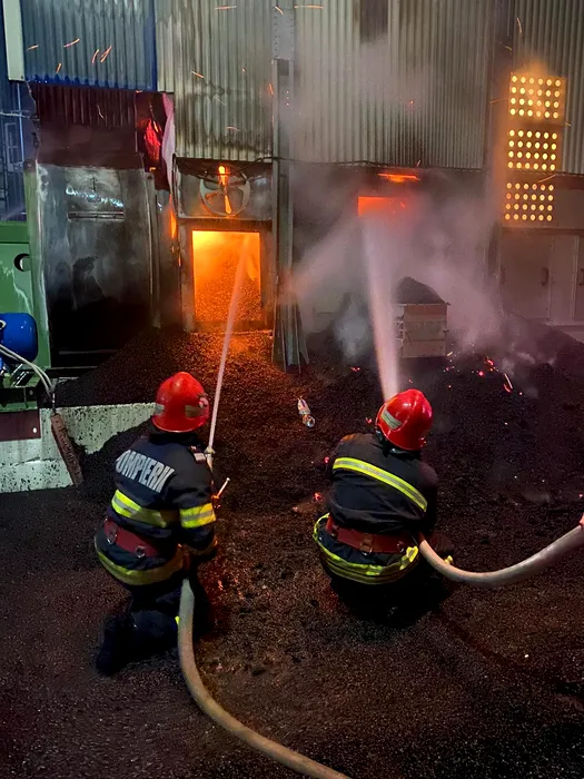 Un incendiu puternic a cuprins un depozit de cereale din Bacău. Zeci de tone de floarea soarelui au fost distruse de flăcări