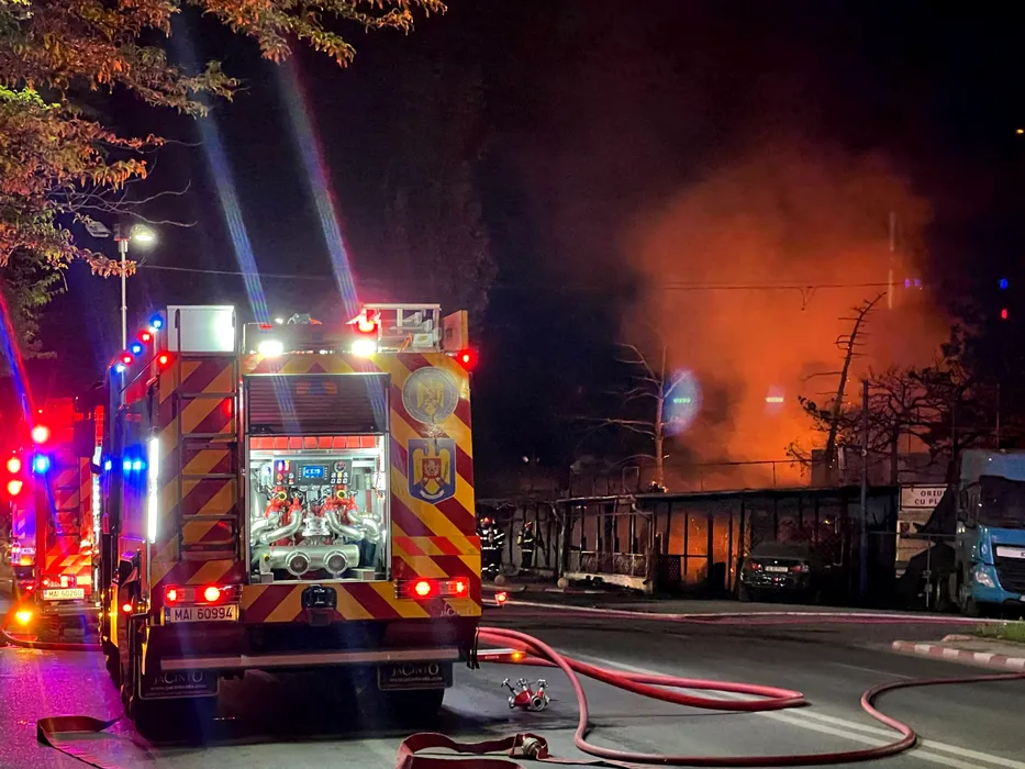 Un INCENDIU puternic a izbucnit la un restaurant din Voluntari. Focul s-a extins la un service auto și o vulcanizare