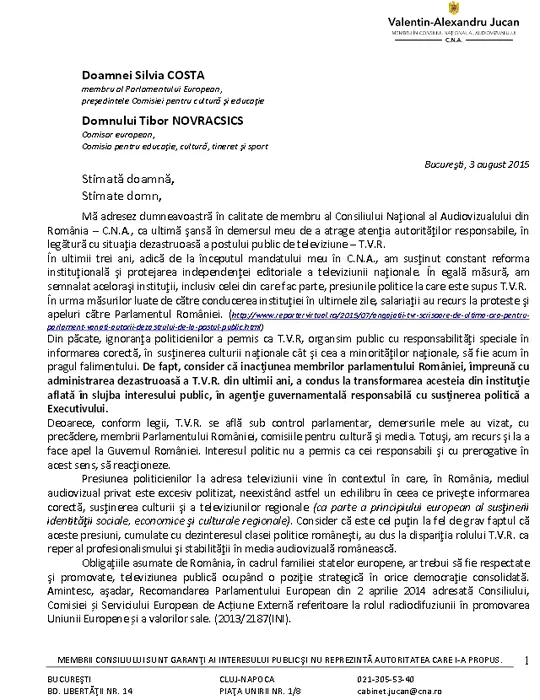 Un membru CNA scrie Comisiei Europene despre „dezastrul” de la TVR