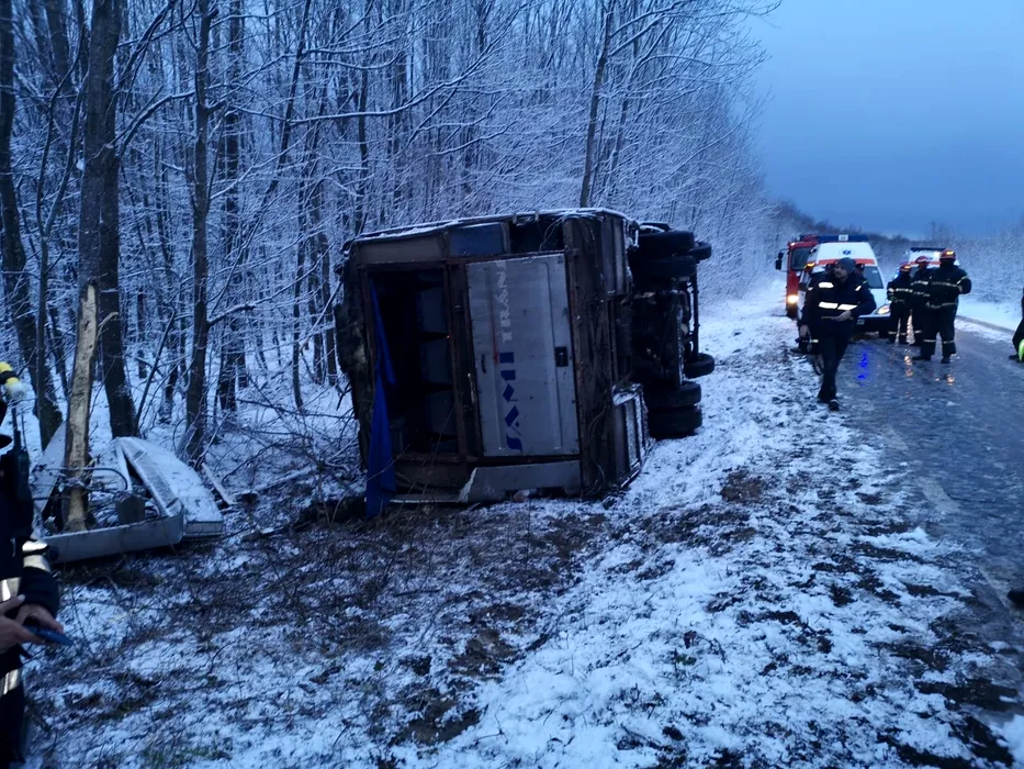 Un microbuz cu 23 de persoane s-a răsturnat din cauza zăpezii FOTO