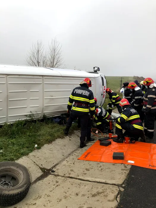 Un microbuz cu șapte persoane la bord s-a răsturnat pe A1. O persoană a murit și alta a fost rănită (VIDEO)