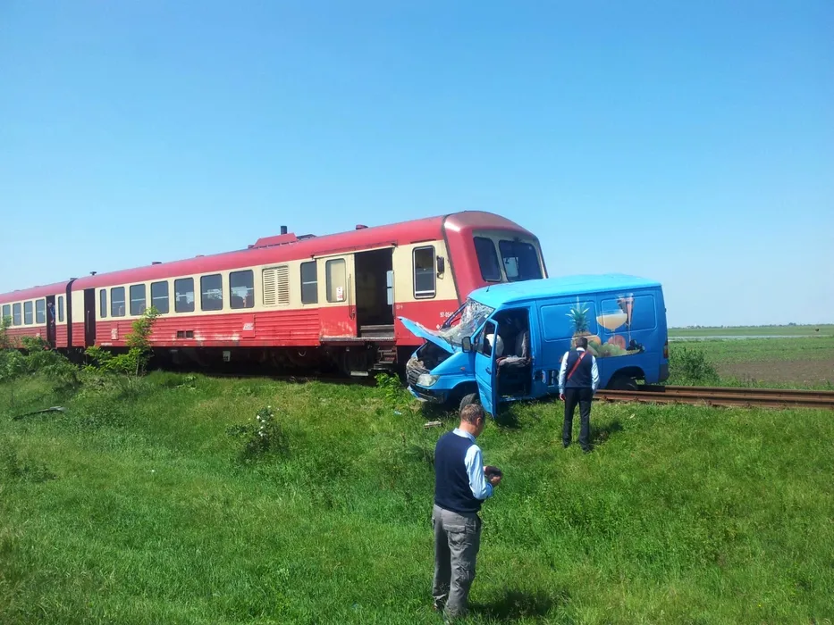 Un microbuz lovit de tren în Timișoara. Șoferul, în stare gravă la spital. GALERIE FOTO
