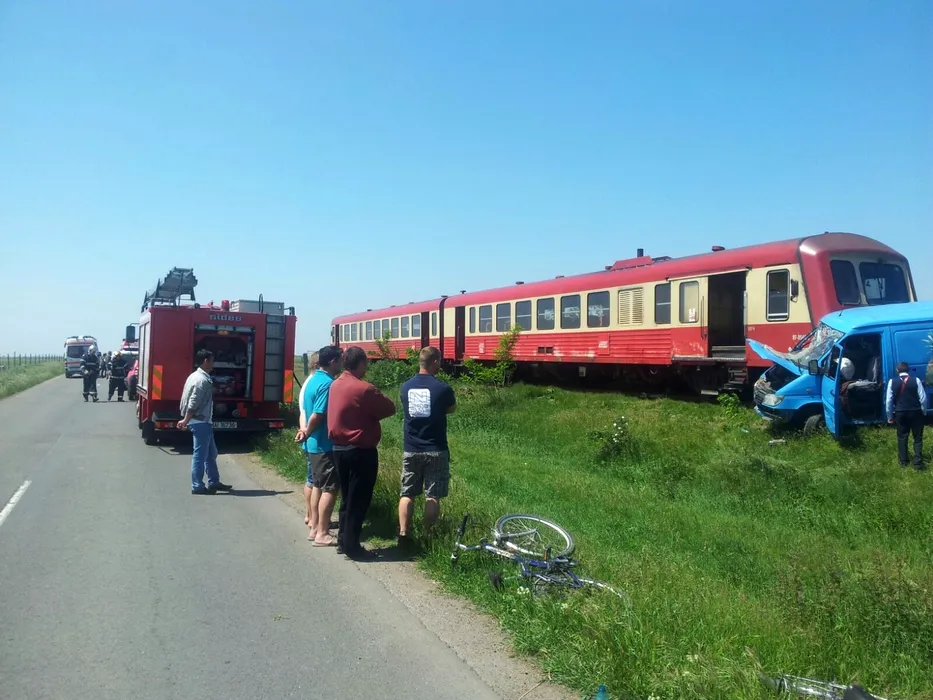 Un microbuz lovit de tren în Timișoara. Șoferul, în stare gravă la spital. GALERIE FOTO