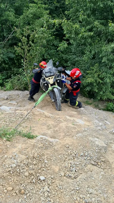 Un motociclist a căzut într-o râpă de 10 metri, în județul Alba. Care este starea bărbatului (FOTO)