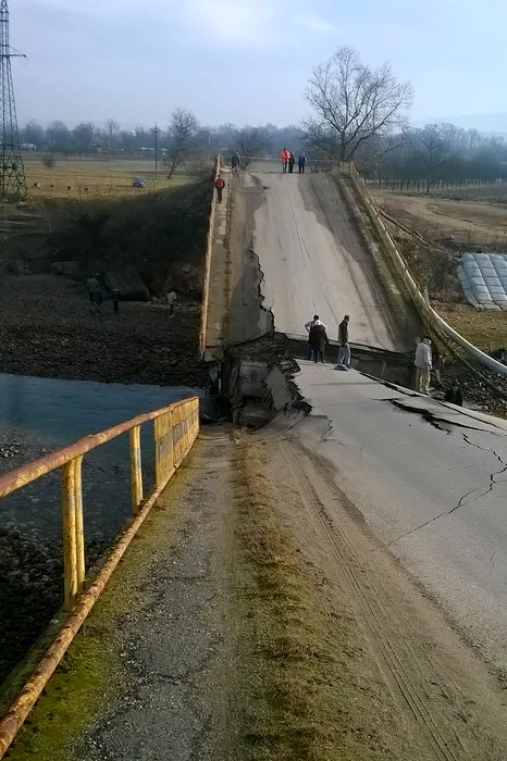 Un pod de două sute de metri construit peste râul Strei s-a rupt, iar două mașini au rămas suspendate pe acesta – VIDEO – FOTO