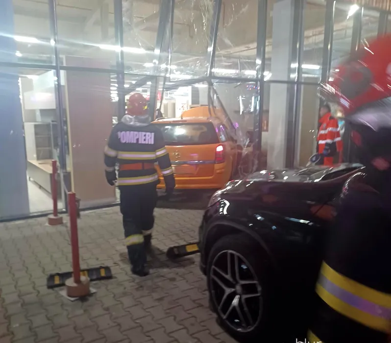 ACCIDENT spectaculos în Suceava. Un șofer a intrat cu mașina în vitrina unui magazin