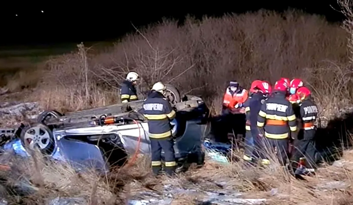 Un șofer a zburat cu mașina peste un sens giratoriu din Caransebeș și apoi s-a răsturnat pe un câmp. Bărbatul nu a vut nicio șansă (VIDEO)