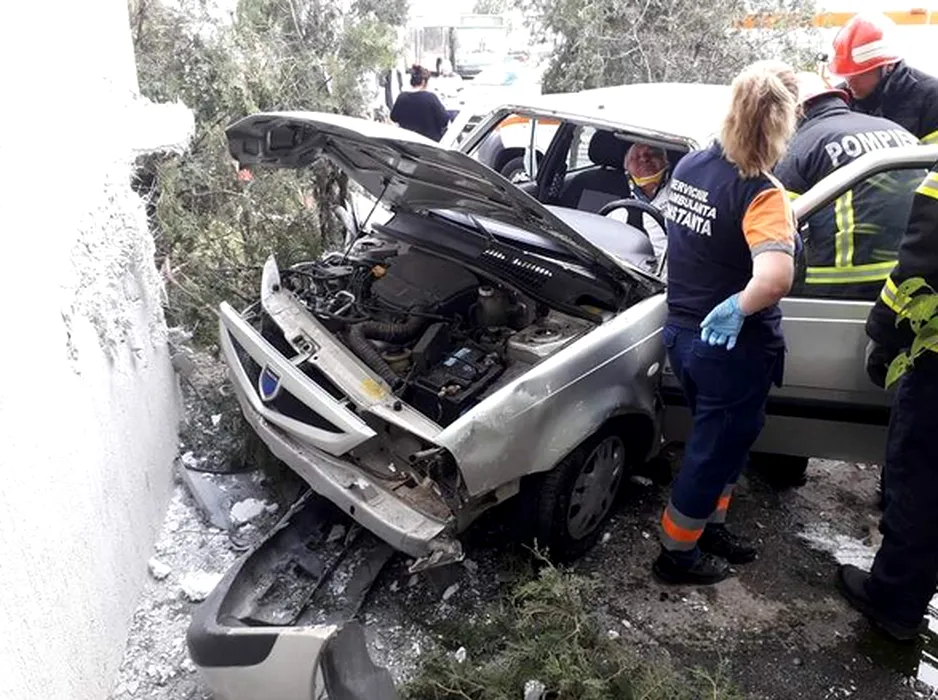 Un șofer beat a intrat cu Dacia într-un bloc din Constanța FOTO