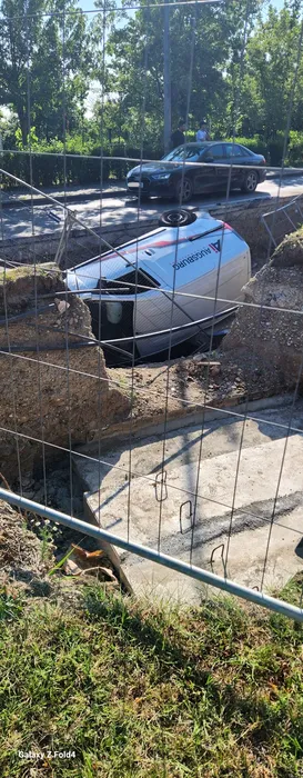 Un șofer din București a plonjat cu duba într-o groapă de schimbat țevi din Sectorul 2