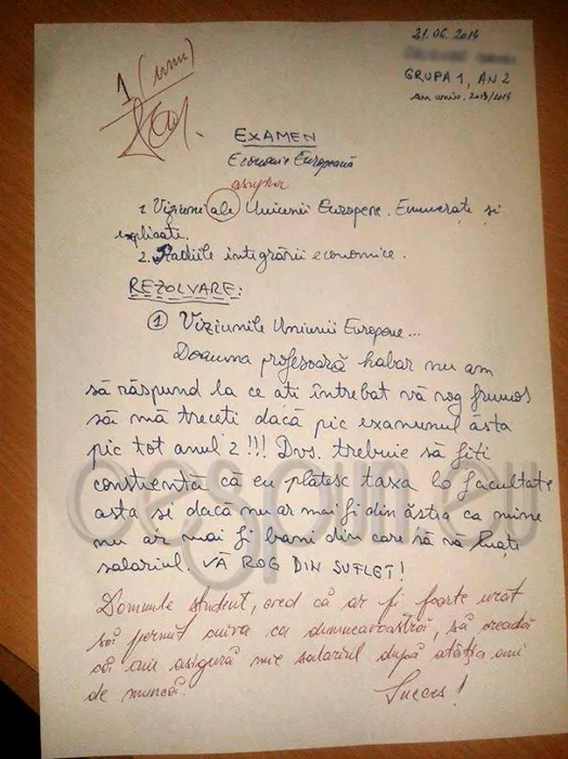 Un student i-a scris profesoarei pe foaia de examen că el îi plătește salariul. Răspunsul acesteia a devenit viral