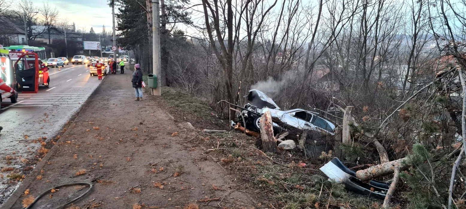 Un tânăr de 23 de ani a murit într-un grav accident, la Suceava. După ce a pierdut controlul volanului, a lovit un pieton şi s-a oprit în mai mulți copaci de pe marginea drumului (VIDEO)