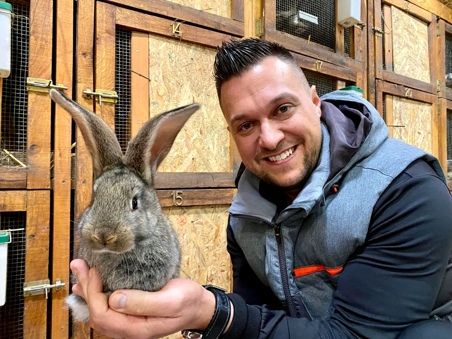 GALERIE FOTO: Un tânăr din Banat are cei mai mari iepuri din România. Îi crește într-un adăpost climatizat, în care a investit mii de euro