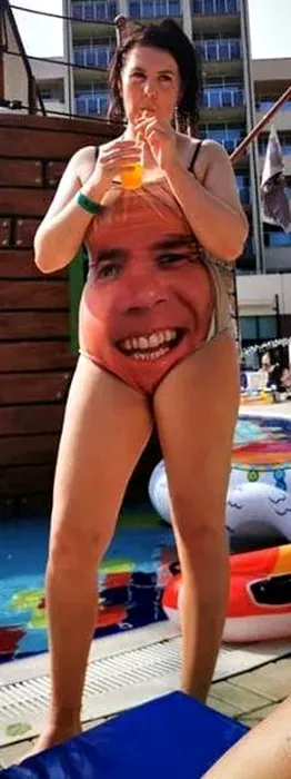 Un tată i-a cumpărat fiicei sale un costum de baie imprimat cu fața lui, pentru a împiedica privirile insistente ale bărbaților de pe plajă
