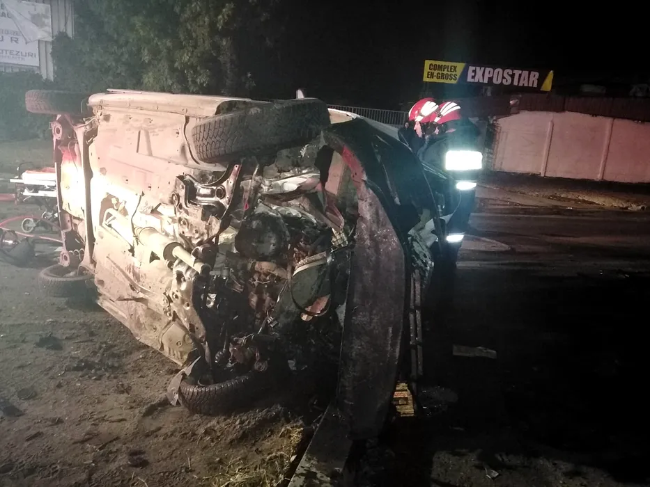 Un taxi cu doi clienți s-a răsturnat pe centura orașului Galați, după ce a fost lovit de un Mini Cooper condus de un șofer băut. Cinci persoane au fost rănite (FOTO)