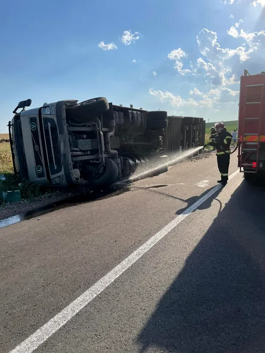 Un TIR încărcat cu oi s-a răsturnat pe un drum din Tulcea. Circa 100 de animale au murit