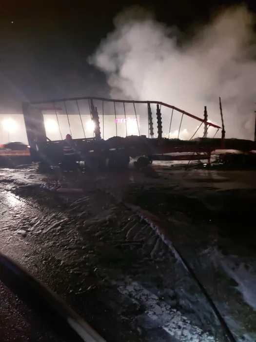 Un TIR plin cu ulei comestibil a ars ca o torță pe A1, pe sensul spre București (VIDEO)