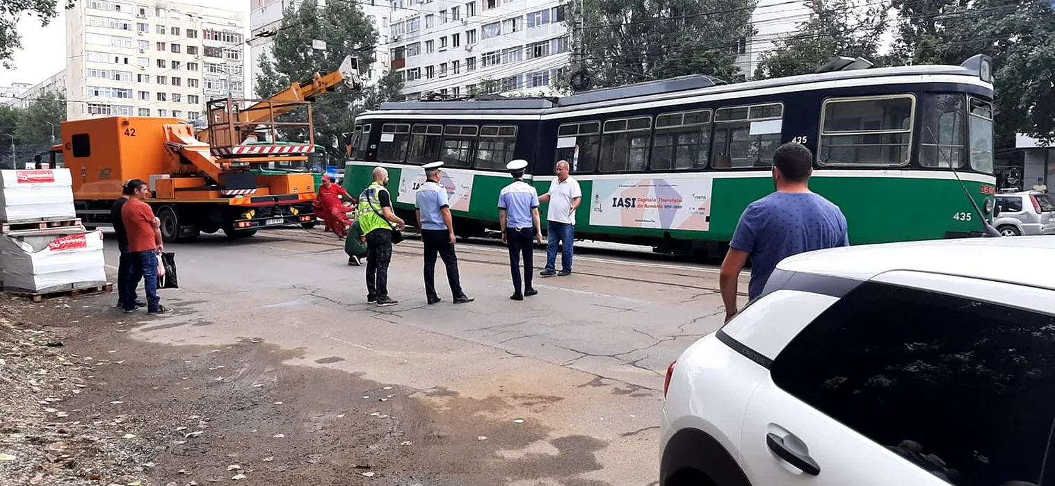 Un tramvai a deraiat în Iași, după impactul cu o mașină. Șoferul a virat brusc la stânga, chiar la intrarea într-o stație (FOTO-VIDEO)