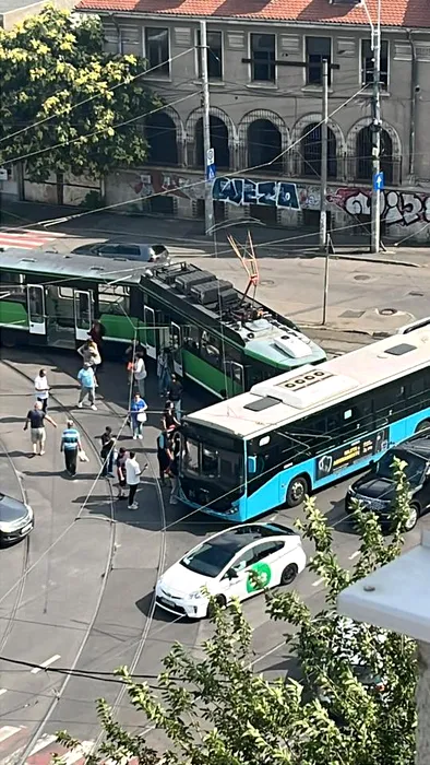 Un tramvai și un autobuz STB s-au ciocnit într-o intersecție din București. Mai multe persoane au ajuns la spital
