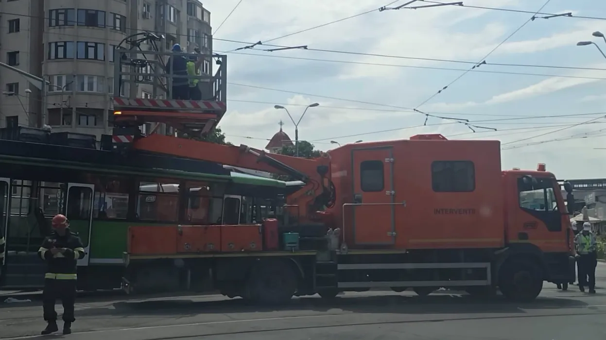 Un tramvai și un autobuz STB s-au ciocnit într-o intersecție din București. Mai multe persoane au ajuns la spital