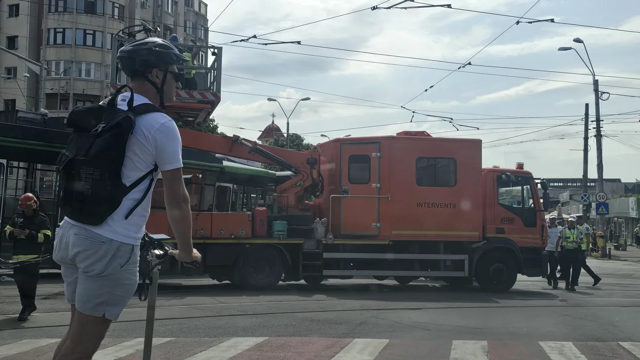 Un tramvai și un autobuz STB s-au ciocnit într-o intersecție din București. Mai multe persoane au ajuns la spital