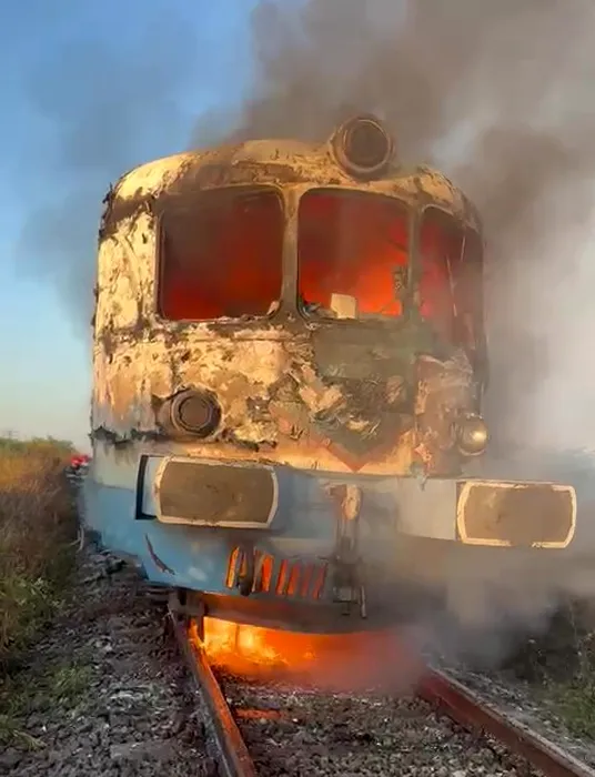 Un tren s-a făcut scrum la intrarea în gara din Oradea. Toți călătorii au fost evacuați